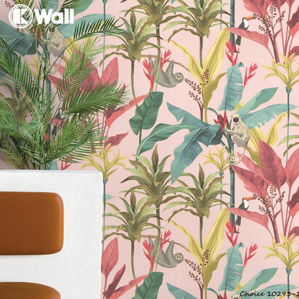 Với khí hậu nhiệt đới của Việt Nam, không có gì ngạc nhiên khi mẫu giấy dán tường với họa tiết lá cây, hoa quả nhiệt đới đang được ưa chuộng. Mẫu này mang lại cảm giác tươi mát, gần gũi với thiên nhiên cho không gian sống.