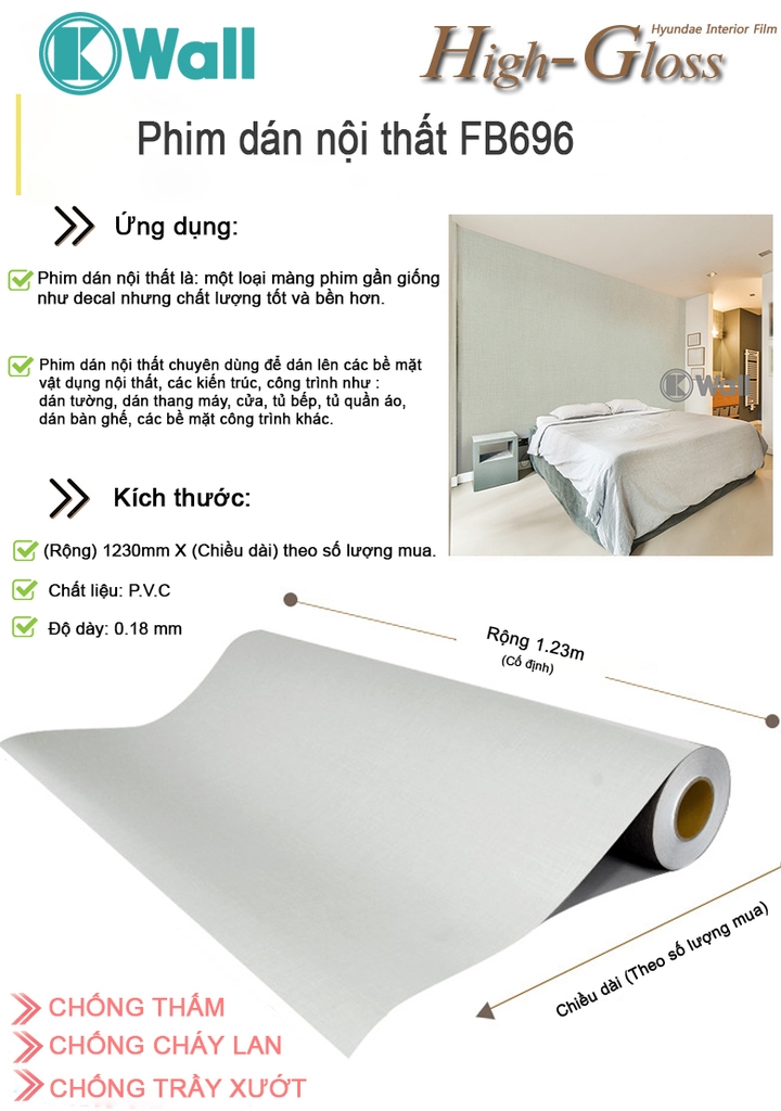 Phim dán nội thất cao cấp nhập khẩu Hàn Quốc FB696