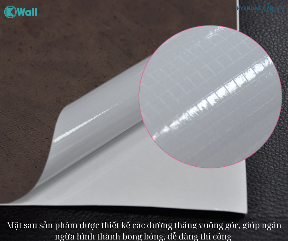 | Chất liệu và cấu tạo | - Lớp Nền (Base Layer): Đây là lớp cơ bản của phim, cung cấp độ bền và độ dẻo cho phim. Sử dụng PVC an toàn cho sức khỏe và môi trường. - Lớp In (Printed Layer): Lớp này chứa hình ảnh, mẫu mã hoặc hoa văn được in trên bề mặt của phim. - Lớp Bảo Vệ (Protective Layer): Đây là lớp bảo vệ được áp dụng phía trên lớp in, giúp bảo vệ hình ảnh khỏi trầy xước, bám bụi và mài mòn do sử dụng hàng ngày. - Lớp Keo (Adhesive Layer): Lớp keo được áp dụng phía sau phim, giúp dính chặt vào bề mặt cần dán. Huyndaesheet sử dụng keo an toàn cho sức khỏe, ko chứa Formaldehyde - Lớp Bảo Vệ Phía Dưới (Backing Layer): Đây là lớp bảo vệ phía dưới phim dán, giúp bảo quản keo và dễ dàng tháo ra khi cần thiết. |