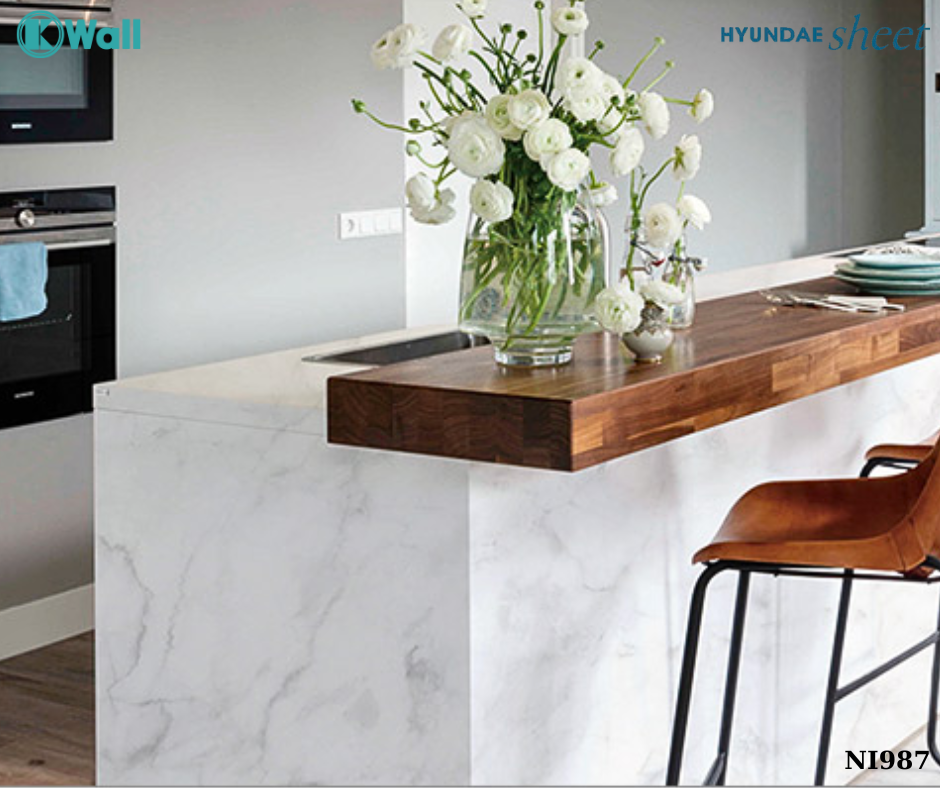 Nếu bạn muốn không gian bếp sang trọng hơn, dán vân đá sẽ là lựa chọn hoàn hảo. Với các mẫu vân đá như đá marble hay granite, không gian bếp sẽ trở nên cao cấp và thời thượng hơn.