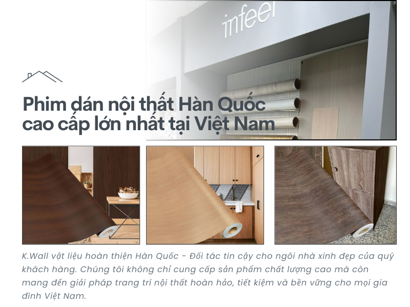 Bên cạnh phim dán nội thất, K.Wall còn cung cấp các dòng giấy dán tường cao cấp từ Hàn Quốc với đa dạng mẫu mã và chất liệu, đều đạt chứng nhận xanh và tiêu chuẩn xuất khẩu quốc tế.